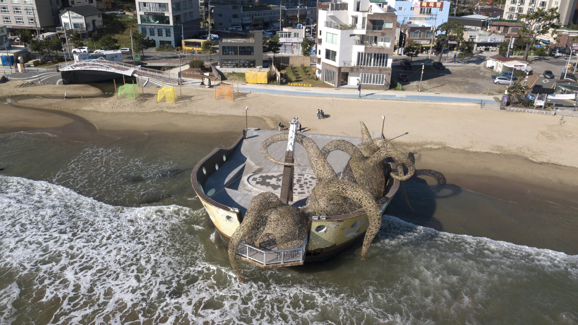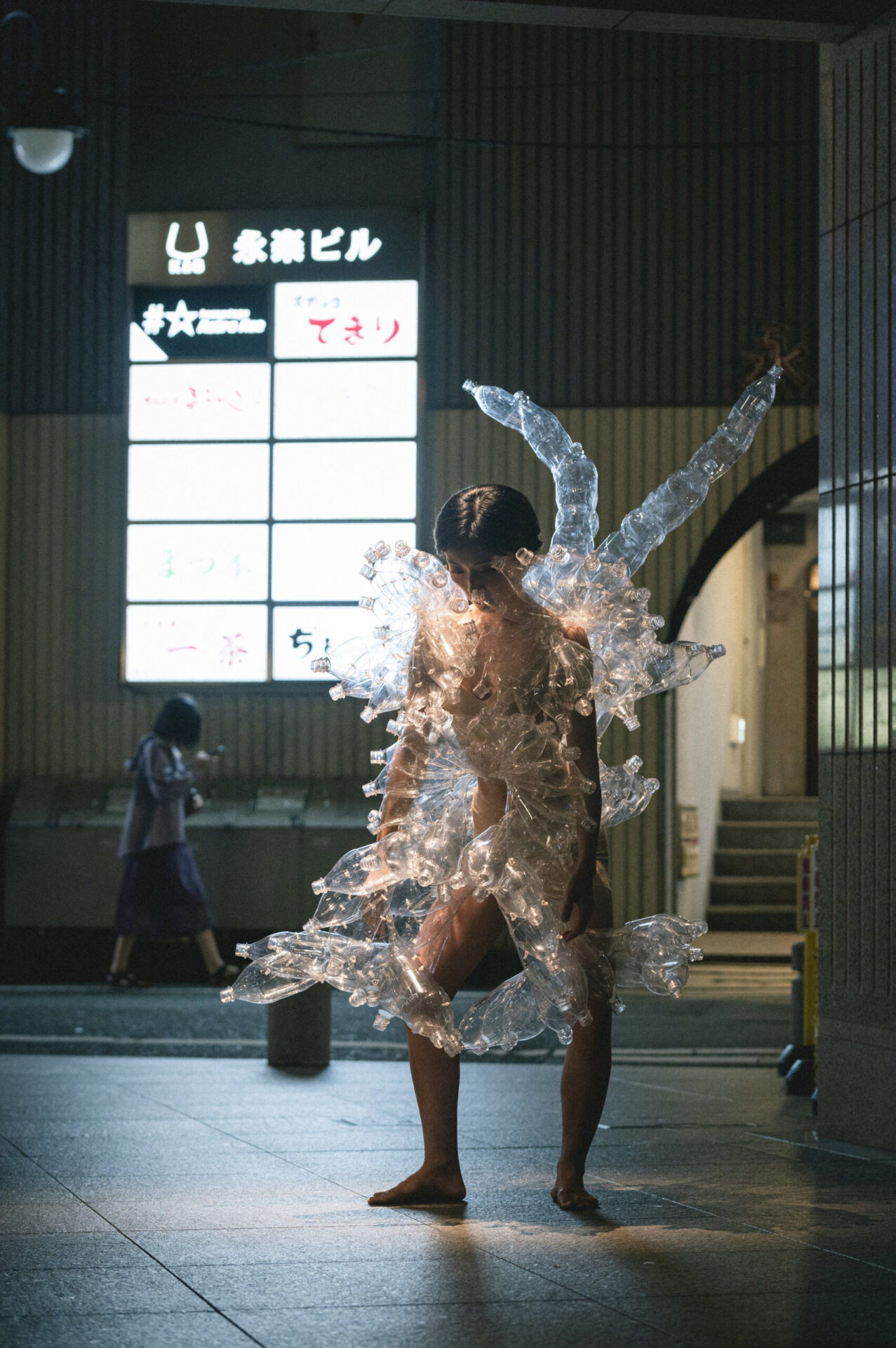 海外での作品制作の場合もリーロイのスタイルは変わらず、その国、その場所で生み出される廃棄物に着目し、それをウェアラブルな作品や建築構造物へと昇華させていきます。